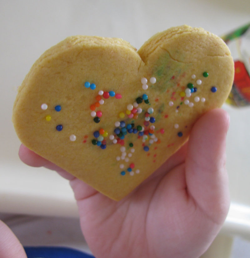 This morning, I was awakened to Ethen blowing a toy trumpet and announcing "Mom! It's time to make cookies ... and cake ... and cupcakes for Valentine's Day!" Really? Where has he learned this? "And...," he went on, "we gotta watch out for monsters!" Love this kid. Today he made me his first craft in preschool (a clay heart -- painted blue, of course) and my heart melted.