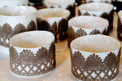 Next we decorated crowns. A week prior I prepped the crowns. Lace can be pricey so be sure and use a coupon! I bought mine from Joanns with a 50% coupon. Price varies on what type of lace you purchase. Mine was $8/yard, so with my coupon it turned out to be about $2/crown. I purchased a little more than 1/2 yard for each crown. Then I cut them at about 19-20" each to make room for the overlap where I glued them.